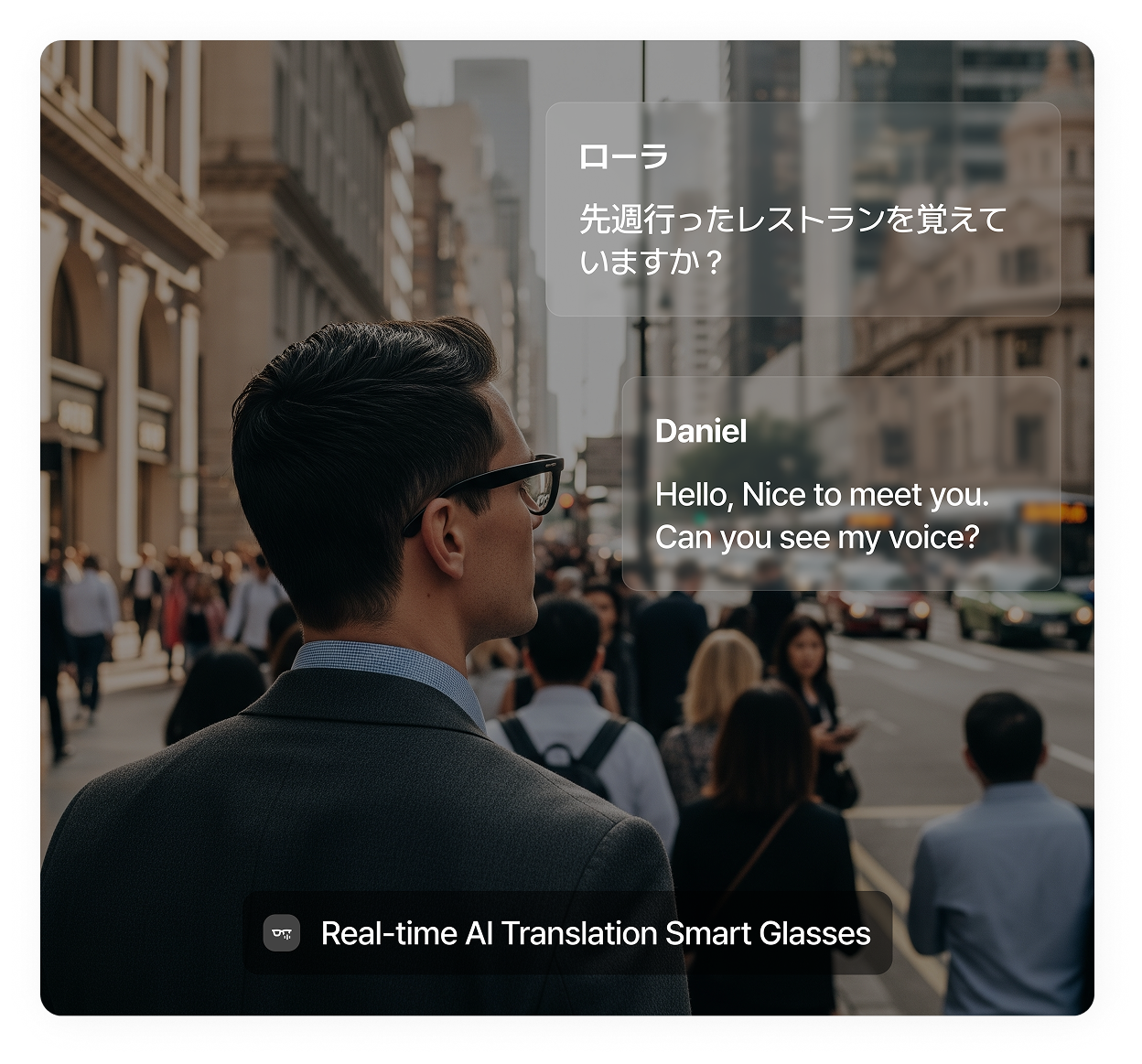 AI performance subtitle glasses service that automatically delivers multilingual subtitles for the voices of actors in plays and musicals.